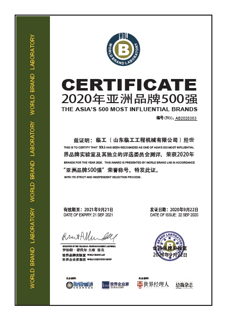 9月22日,由世界品牌实验室和世界企业家集团共同编制和发布的2020年《亚洲品牌500强》排行榜揭晓。临工凭借强大的品牌实力连续七年荣登榜单,继续向着世界知名的目标大步迈进。
