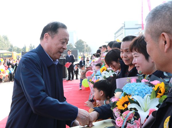 开幕式上,举行了2020山东临工“最美家庭”颁奖仪式,副总经理马兴庆宣读了表彰决定。在热烈的掌声中,董事长王志中,党委书记、总经理文德刚分别为“最美家庭”代表颁发奖杯和纪念品,朝气蓬勃的临工职工子女为他们献上鲜花。营销公司西南战区区域经理鲁田华的爱人张慧作为获奖家庭代表作了发言。