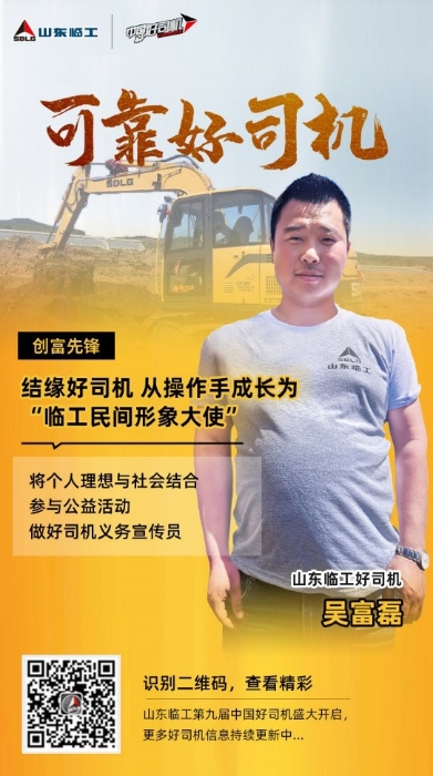 参加临工好司机活动前,吴富磊是一个性格内向、不善言辞的大男孩。除了想挣更多的钱外,对未来没有明确的规划。通过参加临工好司机活动,他学到了许多机械维修与保养的专业知识,交到了许多行业内的朋友,明白了开挖掘机不仅可以实现自己致富,还可以帮助他人致富,是一份很阳光的职业。他为山东临工致富不忘乡亲,为平凡人搭建成长平台,积极投身社会公益活动的精神感到由衷敬佩。