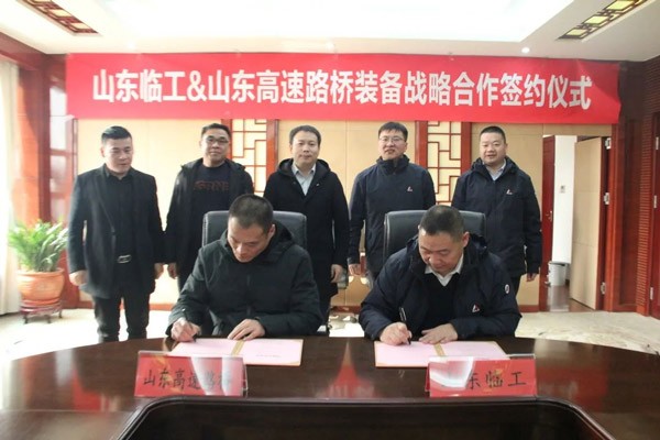 1月18日,山东临工与山东高速路桥装备有限公司举行战略合作签约仪式。公司董事长王志中会见山东高速路桥董事长左国胜一行。山东高速路桥副总经理韩军与山东临工总经理助理唐俊斌代表双方在战略合作协议上签字。