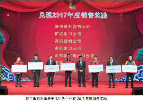 随后,公司财务总监孙静女士宣读了《临工重机2017年度评聘决定》以及《2017年度销售奖励的决定》。号召全体员工向获得聘书的职工学习,向获得销售奖励的部门表示祝贺,并表示,在新的一年里,希望公司全体职工、各个部门都能再创佳绩。