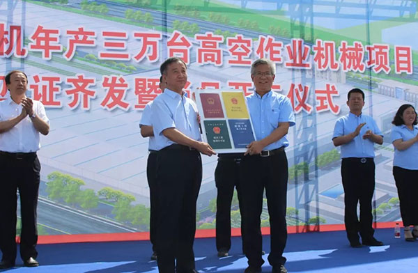 仪式开始,公司总经理支开印同志介绍了年产三万台高空作业机械项目情况,他指出:“该项目的结构件焊接、喷涂和整机装配要实现高端智能制造,制造工艺水平要达到国际一流,在济南高新区打造中国高空作业机械智能制造基地。”