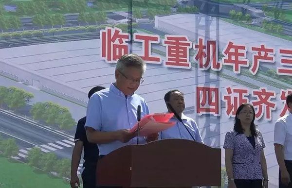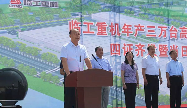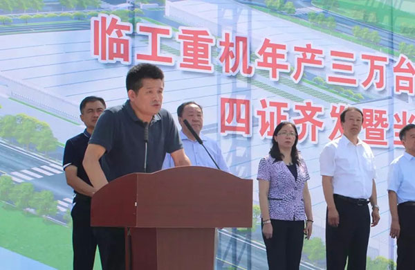 四证颁发后,济南高新区党工委副书记、国家信息通信国际创新园服务中心常务副主任焦卫星书记代表高新区党工委、管委会发表讲话。焦书记指出:“一直以来,济南高新区区委、政府非常关注临工重机的快速发展,高新区各职能部门将进一步践行“亲商、重商、爱商、护商”理念,强化责任意识、服务意识,及时跟进、主动服务,全心全意打造一流营商环境。希望项目单位强化时间意识、质量意识,倒排工期、挂图作战、大干快上,力争项目早建成、早投产、早见效。今天开工的年产三万台高机项目,必将对高新区经济社会发展注入更加强劲的动力。希望临工重机在高新区这片热土上再展宏图、再创佳绩!”