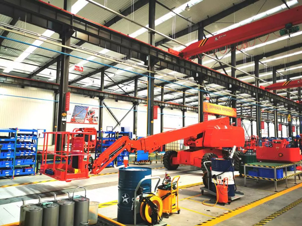 来到新建臂车联合车间,察看直臂、曲臂式高空作业平台生产情况。目前公司多款型号的臂车已达到量产水平,订单需求量大。于总要求臂车生产部门要做好产能规划、生产组织、产品调试,快速提高臂车产能,以应对新的市场需求。