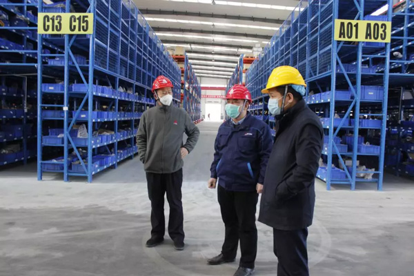 来到新建配件公司,察看配件储备及现场管理情况。目前,公司高机和矿机配件储备充足,管理有序。于总要求,配件公司要做好疫情防控期间的配件投放工作,满足国内外客户配件需求,做好后市场服务支持。