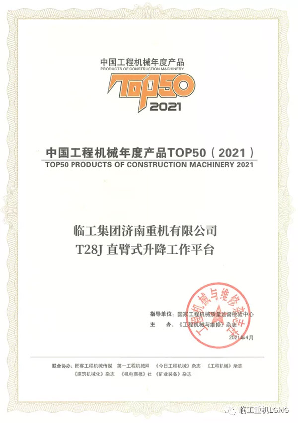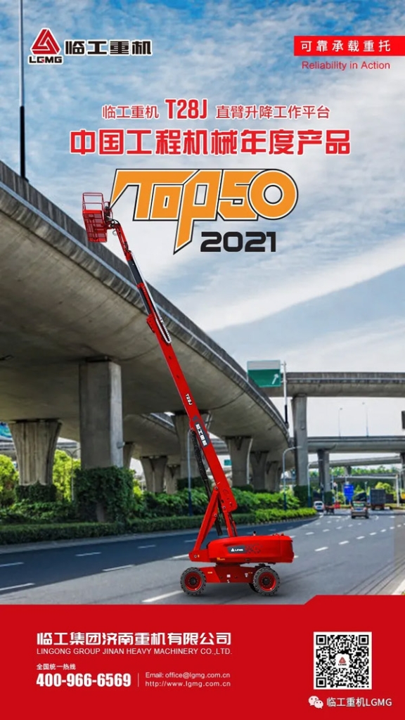 临工重机T28J直臂式升降工作平台荣获2021中国工程机械TOP50奖