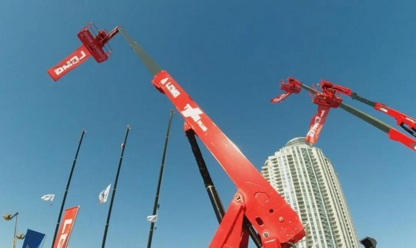 特别值得一提的是,电动直臂车T65JE绝对是临工重机在本届展会上最耀眼的明星,通体红色的涂装,长长的直臂伸向高空,一面书写“LGMG”的大旗在美国拉展上空随风飘扬,也吸引很多行业客户和展会游客来到这款展品前驻足观摩。该电动直臂车采用绿色环保、低噪音、零排放、免维护大容量锂电池,还采用了中央集成桥驱传动,效率提升20%,能实现四轮驱动,四轮转向,全时浮动,保障车辆安全。另外,该平台产品所用四项技术被鉴定为国际先进,四轮转向自动对中技术已授权国家发明专利,线速度恒定控制技术也已申报发明专利,技术的创新提升了产品操作舒适性,提升了产品竞争力。