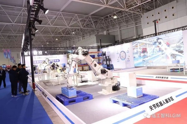临工智科多方位的展示了关节机器人、无人叉车、AMR的作业场景
