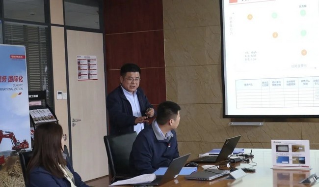 副总经理李连刚结合市场管理案例,向两个必须工程师讲解本土化开发的关键工具和方法。他在发言中指出,已投放市场产品必须做区域产品竞争力分析和工地审核,暴露短板、解决存在问题;空白或潜力市场,必须深度挖掘新产品和差异化需求,清晰规划产品线开发方向和概念设计;针对上半年要发布的新产品,要对目标客户做好新产品发布推介,让客户感知临工产品的核心竞争力和卓越性能。
