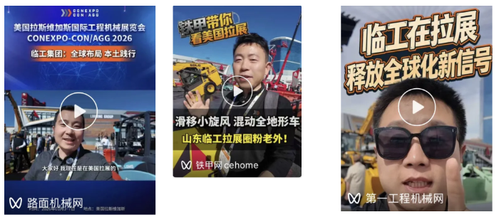 中国工程机械商贸网、慧聪工程机械网、第一工程机械网、铁甲等头部垂直媒体持续跟进,以专业视角解读临工产品矩阵与战略布局。铁甲网以《滑移装载机也能玩出“百变小旋风”》为题,用短视频记录下山东临工展台的高光时刻,让“中国智造”触手可及;中国路面机械网推出《临工集团:全球布局,本土践行》探展直播,打出“不出国门,照样看展会”的标语,用海外客商络绎不绝的身影、一句“就是对咱们临工设备感兴趣”的同期声,生动诠释“本土化深耕”的实力;第一工程机械网则从多维度切入,从新闻直击、趣味科普到沉浸式体验,让临工展台成为可深度解读的品牌窗口。
