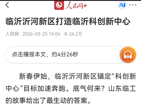 近日,《人民网》聚焦临沂沂河新区 “科创新中心” 建设,以山东临工的创新实践为核心案例,深度解读新区高质量发展的底气与动能。