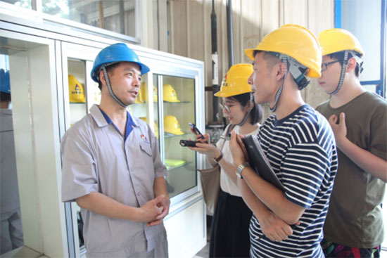 7月中旬,纪念改革开放40周年中央新闻媒体“走进沂蒙”联合采访团来到山东临工,山东临工党委副书记、工会主席周维升陪同并介绍企业发展情况。