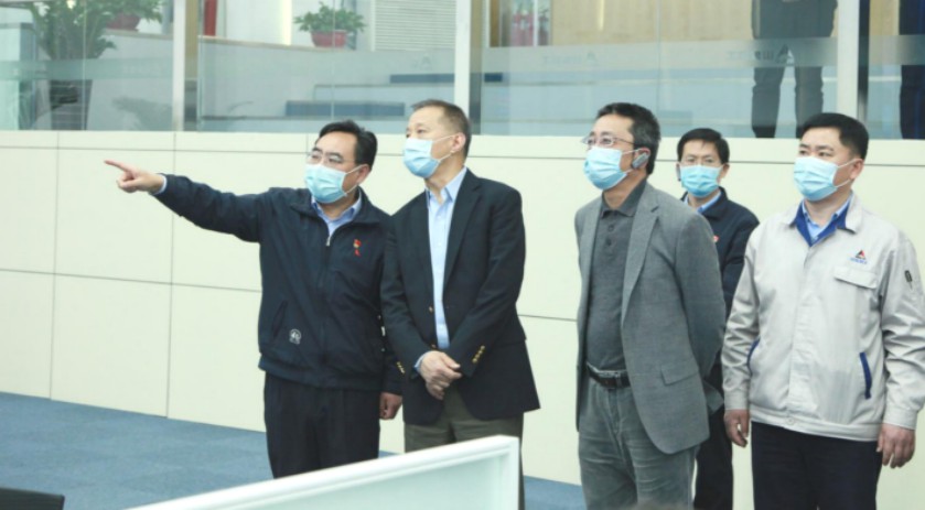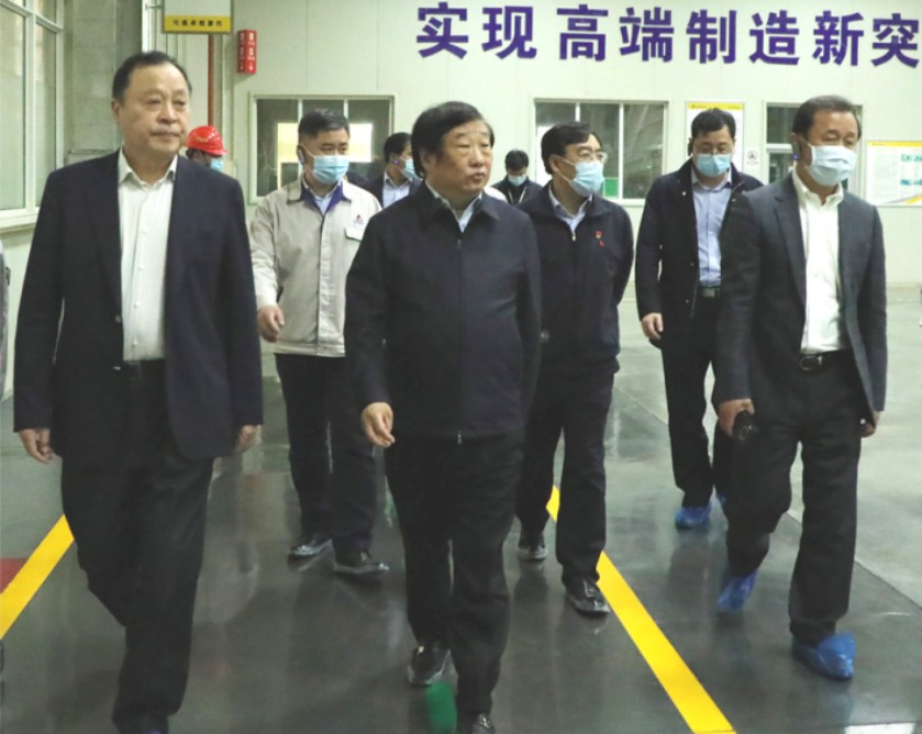 谭旭光一行先后参观了装载机事业部总装一车间、零部件事业部主控阀车间、挖掘机事业部智能制造车间和总装流水线。